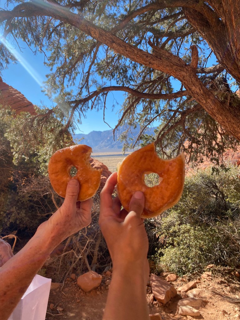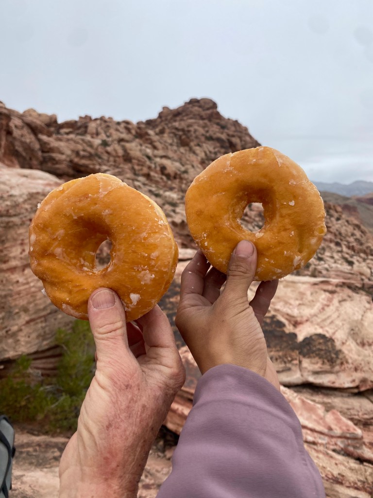 Additionally, my favorite donut place in Vegas is Randy’s Donuts. Donuts are more fun with friends, so I brought one to share each morning. We got to take some silly photos of donuts and reward ourselves with sweet treats.