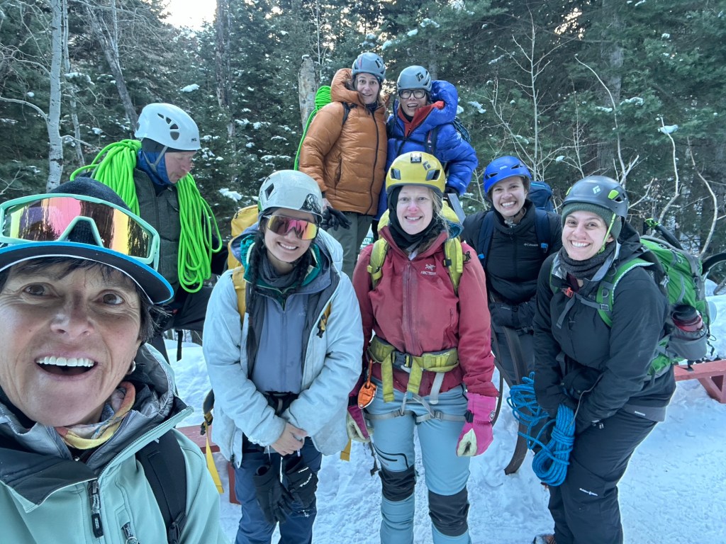 A Friday ice climbing fundamentals clinic with the legendary Angela Hawes!