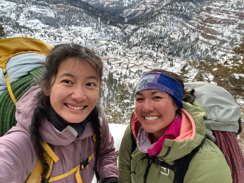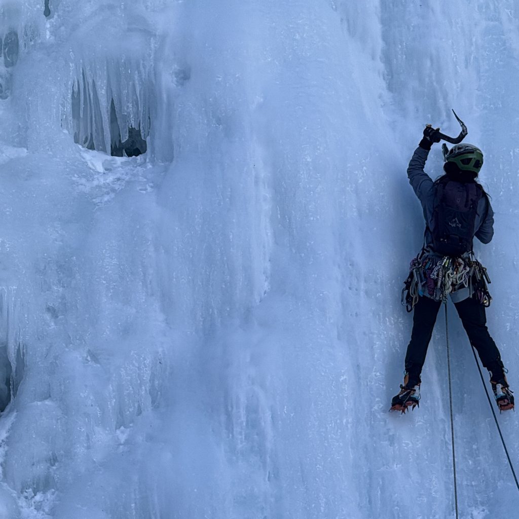 The All In Ice Festival, held the first weekend of the year, is a small but incredibly meaningful event focused on accessibility in climbing. This was my second year attending, and my first time working as an ice guide. I believe strongly in the importance of creating spaces like this for affinity groups and minority climbers. It’s so much more than just ice climbing; it’s about breaking down the barriers that prevent people from experiencing the joy of the outdoors. The festival brings together a beautiful community, and it’s been incredibly fulfilling to be a part of it, both last year and especially this year as part of the guide team. My partner, Ken, is also an essential part of the organizing team, and I’m so proud of the energy and love they pour into this event.