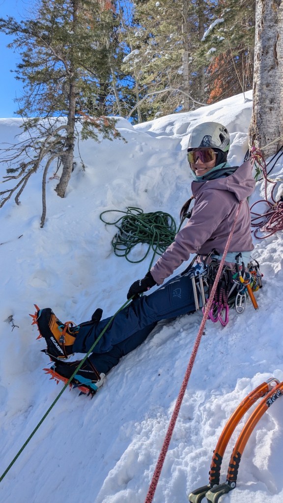 The course challenged me to lead some steeper, more challenging ice climbs than I’d led before. I was a little nervous at the start, but each climb felt surprisingly comfortable. I’m thrilled to finish the season feeling this strong, both physically and mentally. Talisman Simulator, in particular, had thin ice, and delicate crampon placements on exposed rock. I was able to move carefully but confidently, and snap into a great head space for leading, which felt pretty special.