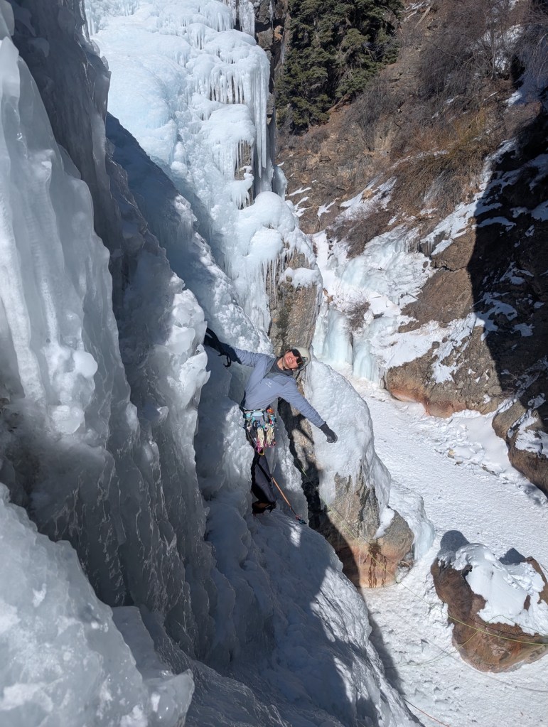 I’m grateful to have led a bunch of WI4 climbs around the Ouray area, and to feel really confident on these climbs. I feel significantly different climbing ice now than I did at the start of the season, back in Canmore in December. I feel like a more capable ice climber: I’m climbing faster, my swings and kicks are more precise and effective, I’m finding ice screw placements faster, and I feel significantly more comfortable moving around in the ice environment.