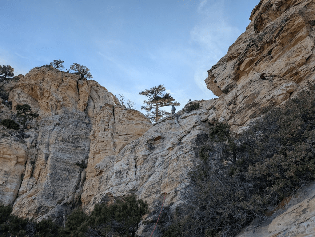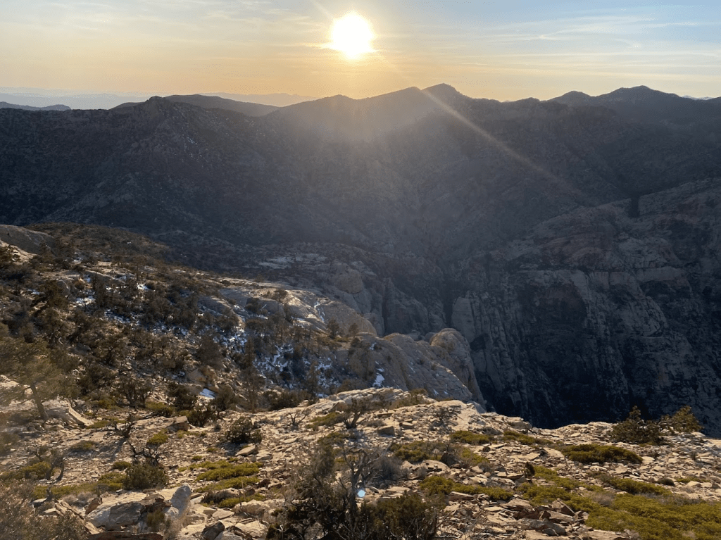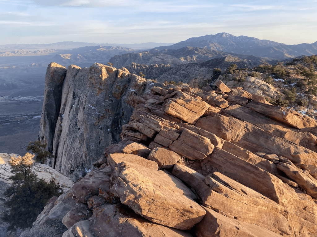 The Vegas climbing season is going well. I’ve been in town for almost a month now and am remembering how to climb with my bare fingers after the long ice season. I’ve been kept busy with work at The Mountain Guides. It’s been a joy to rock guide in this special place. Finding time for personal climbing has been hard as I get back into climbing shape, and juggle lots of life admin, and guide admin work, but yesterday, Ken and I had the pleasure of climbing Mount Wilson.