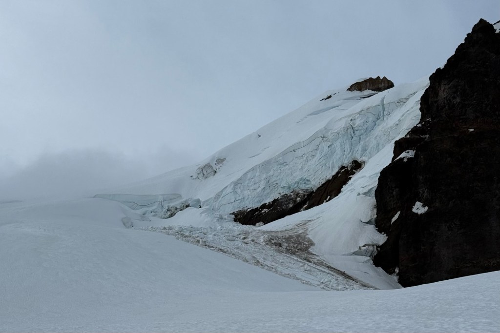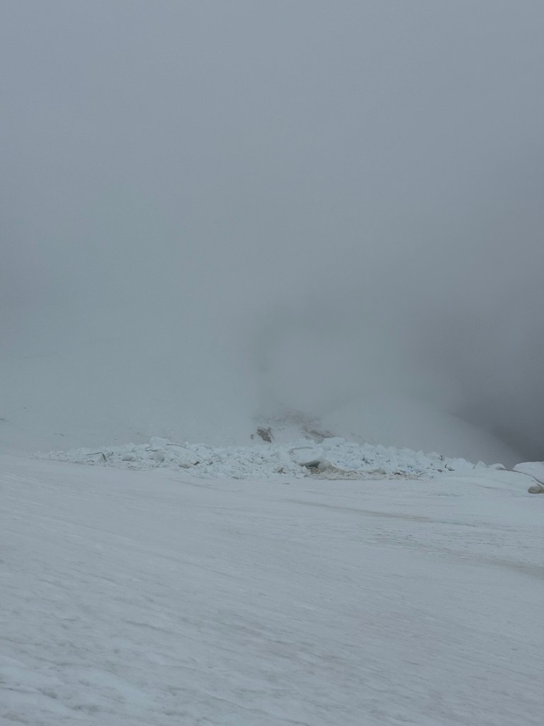 I push everything down. There can be time for that later. Right now, two students and my co-guide are looking at me. I take a deep breath and discuss firstly the objective part. That was ice fall. We’re not sure where. We’re not in danger where we stand currently. We realistically don’t have other options, besides going down and passing underneath quickly. We can’t see in the whiteout but I think I can navigate us farther around the runout zone to provide perhaps a hundredth of a percent less likelihood of icefall hazard. I say this is unfortunately just part of the risk of being in the mountains, a part we unfortunately cannot control in entirety, which is true, but on the inside my mind is already racing through all the choices we made today, yesterday, this week, to understand if there was anything I could have or should have done differently.